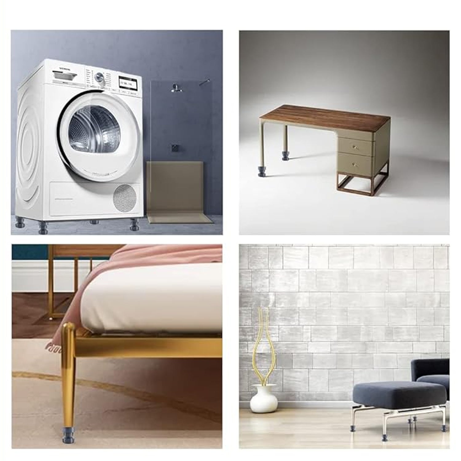 - Easy to Clean: This washing machine feet can also increase the height of household appliances and furniture to prevent them from being damp, thereby making cleaning easier