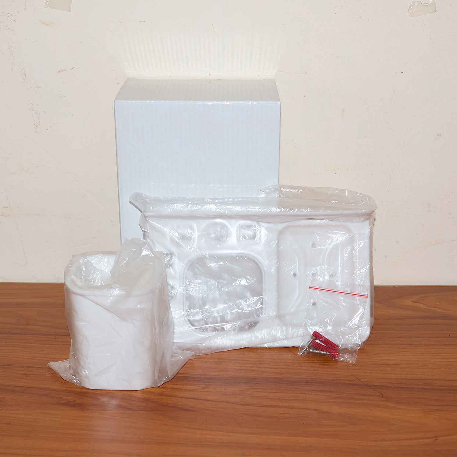Installation: Screw or adhesive wall mounting (hardware not included)