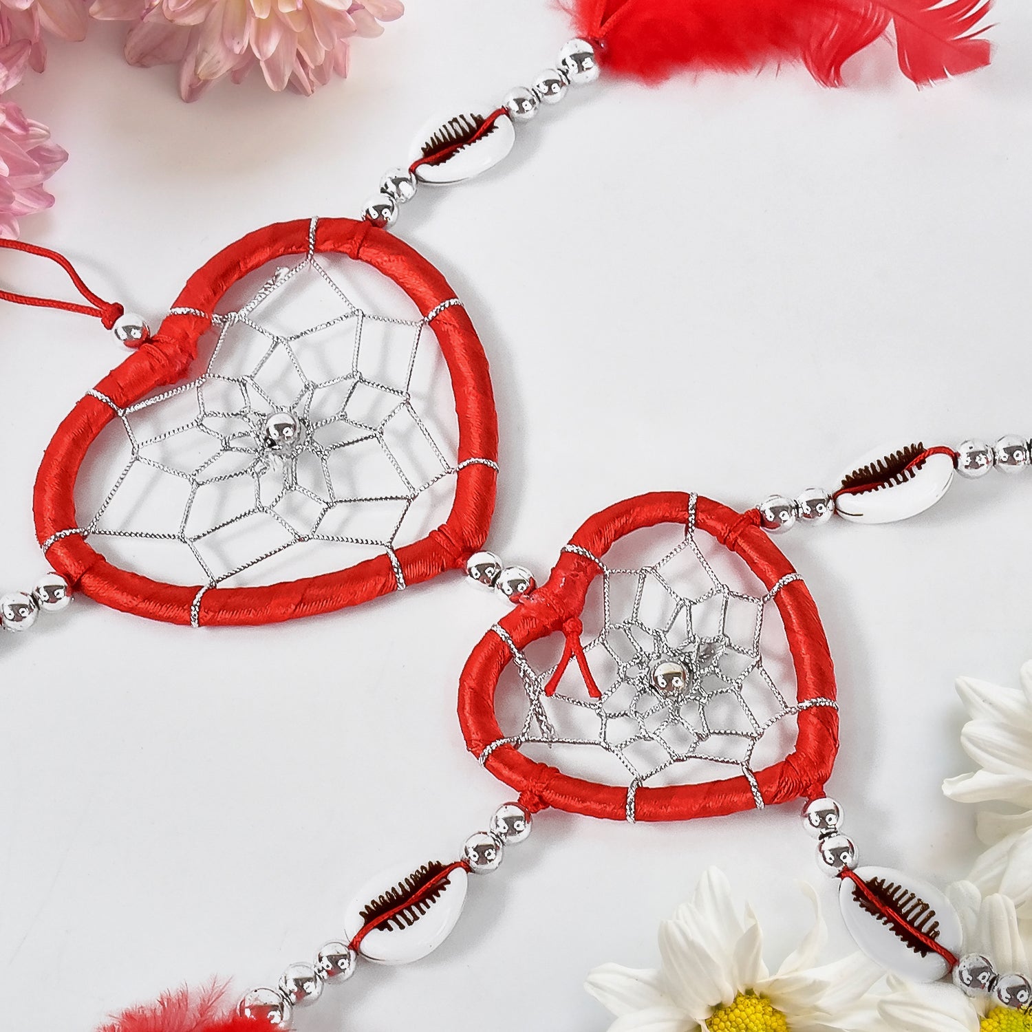 sleep charm, negative energy blocker, spiritual decor, wall charm, living room ornament, car mirror hanging, spiritual gift item,heart dream catcher,feather wall hanging, red dream catcher, heart charm with feathers